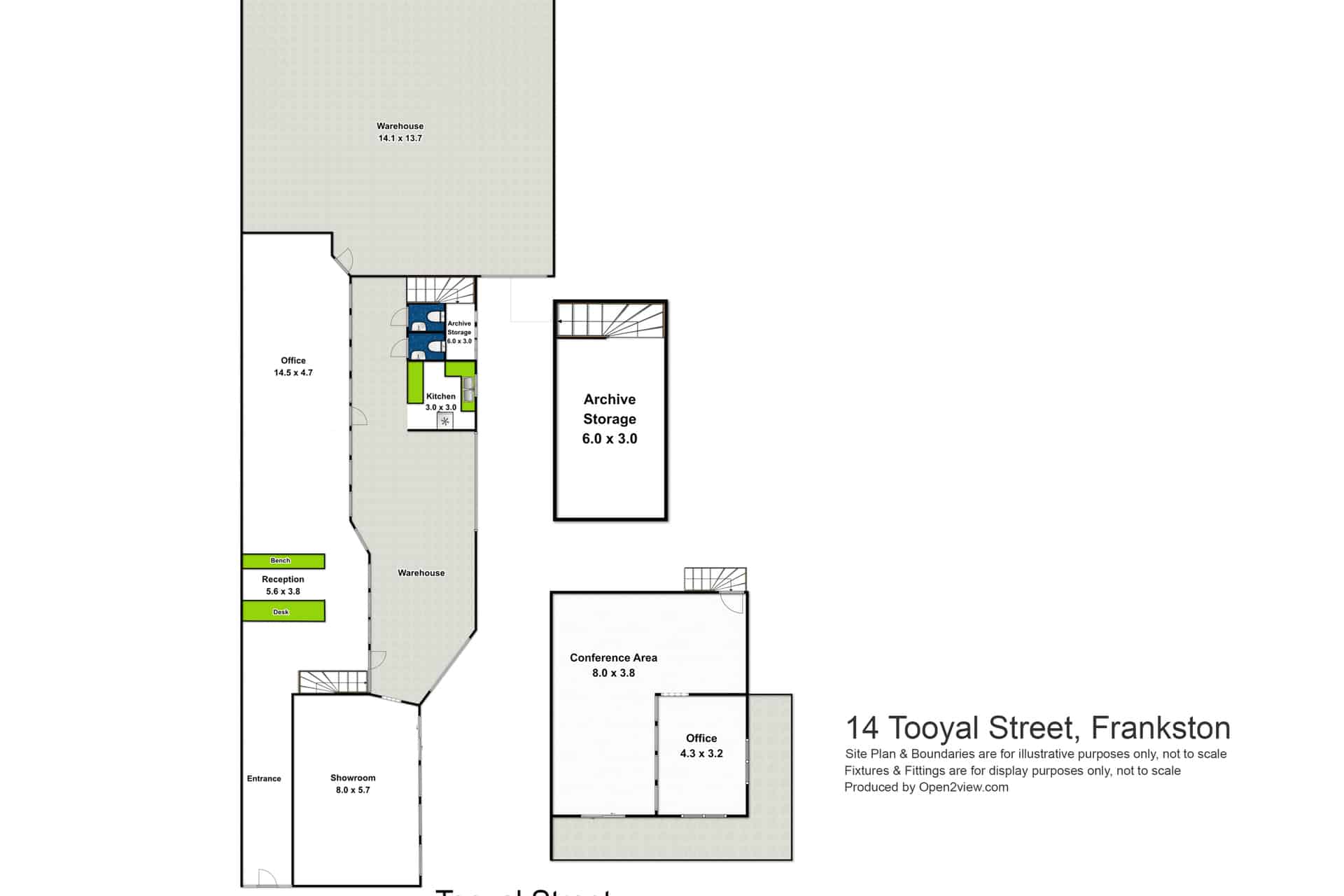 * 14 Tooyal Street, Frankston – comprising offices, meeting rooms, and warehouse, Land area 640sqm* Building area 500sqm*
