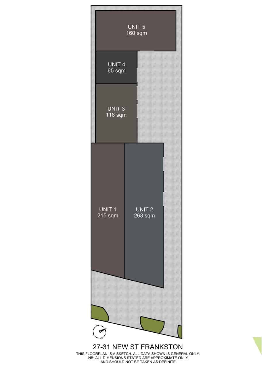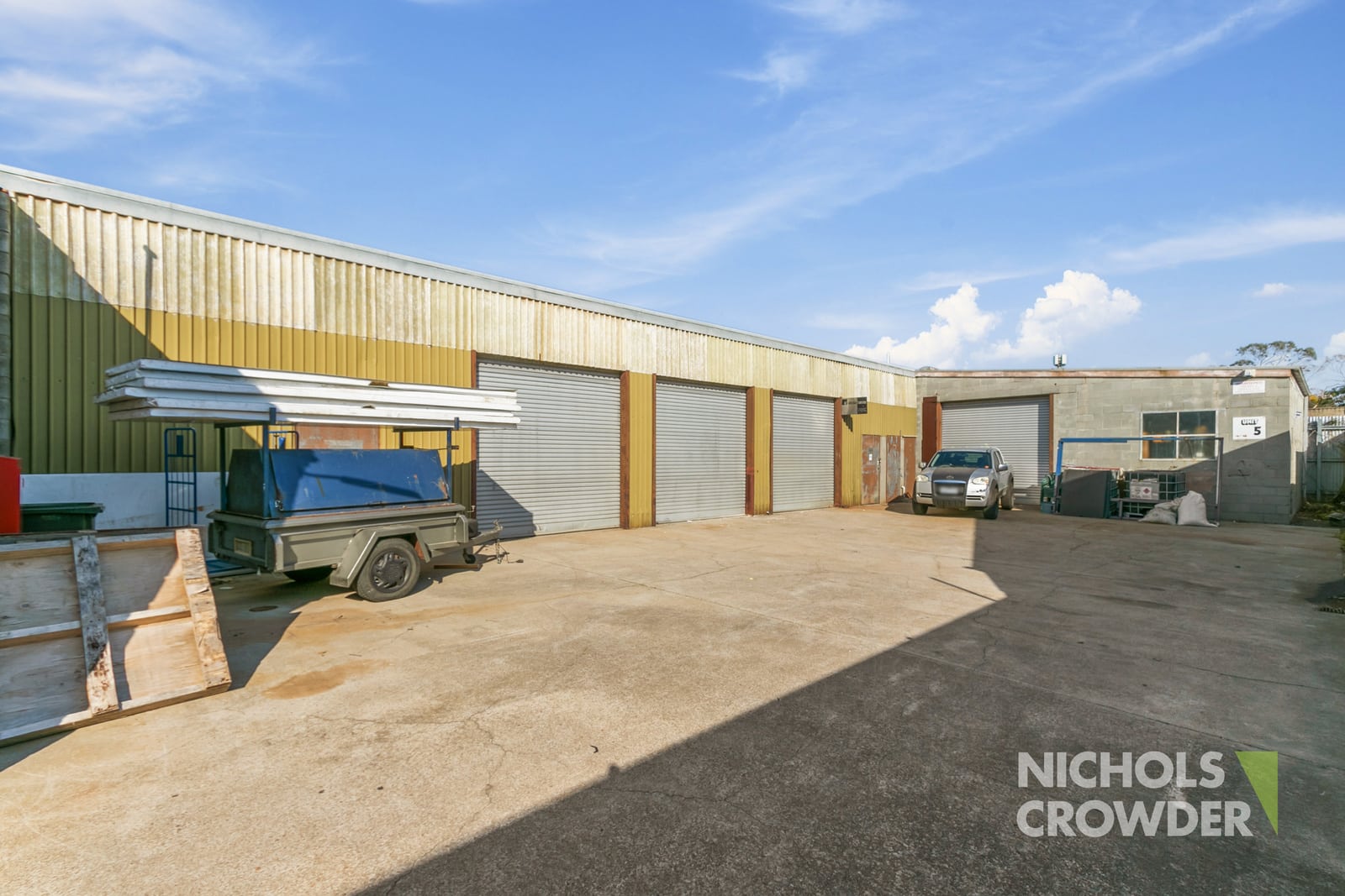 3 out of the 5 Warehouses currently tenanted with a return of $46,637.76 p.a.* + GST + outgoings plus an additional $15,000 p.a. + GST + Outgoings estimated when fully leased.