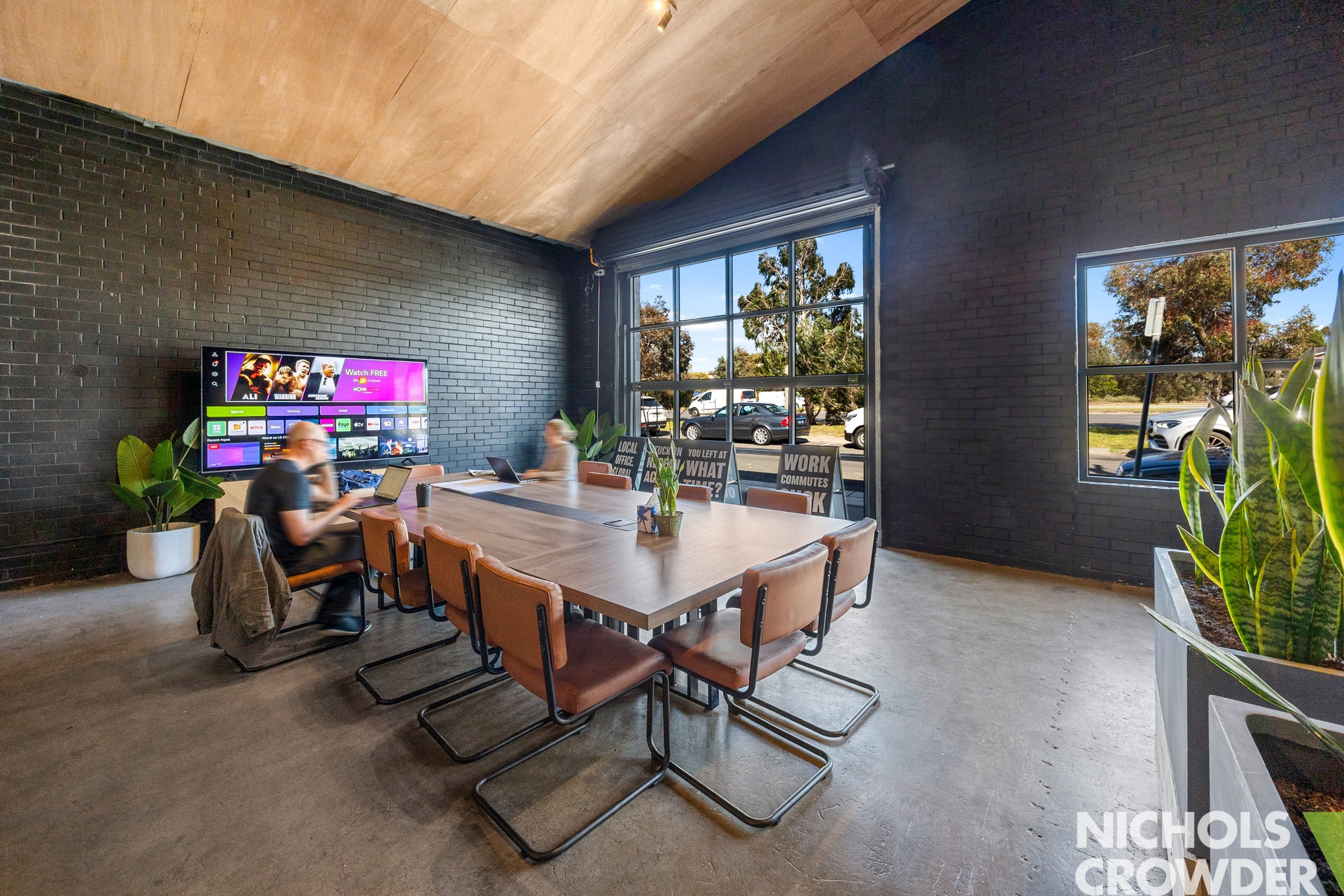 Featuring exposed brick, black-painted walls and trusses and a clearspan layout, it combines style and functionality.