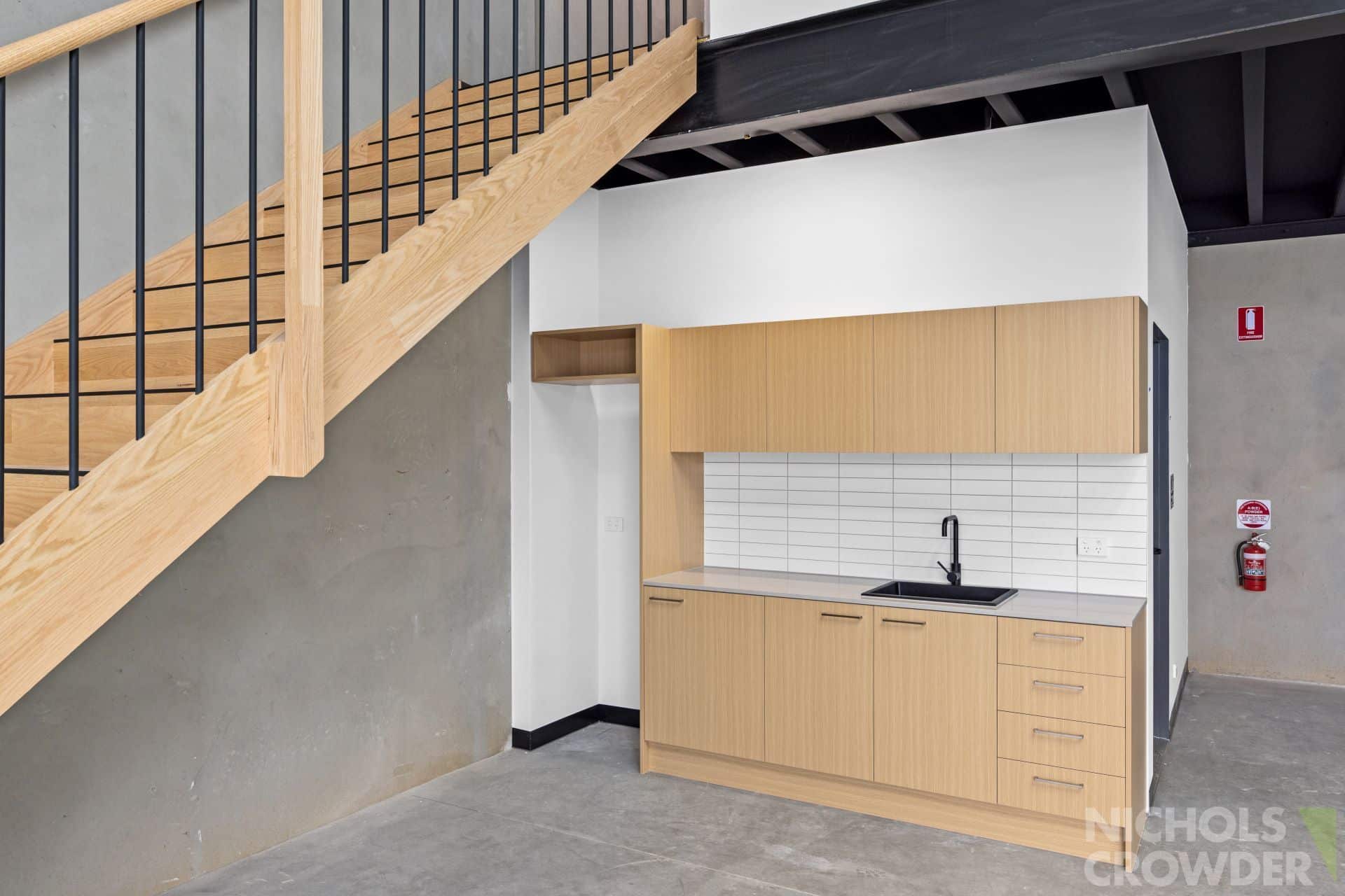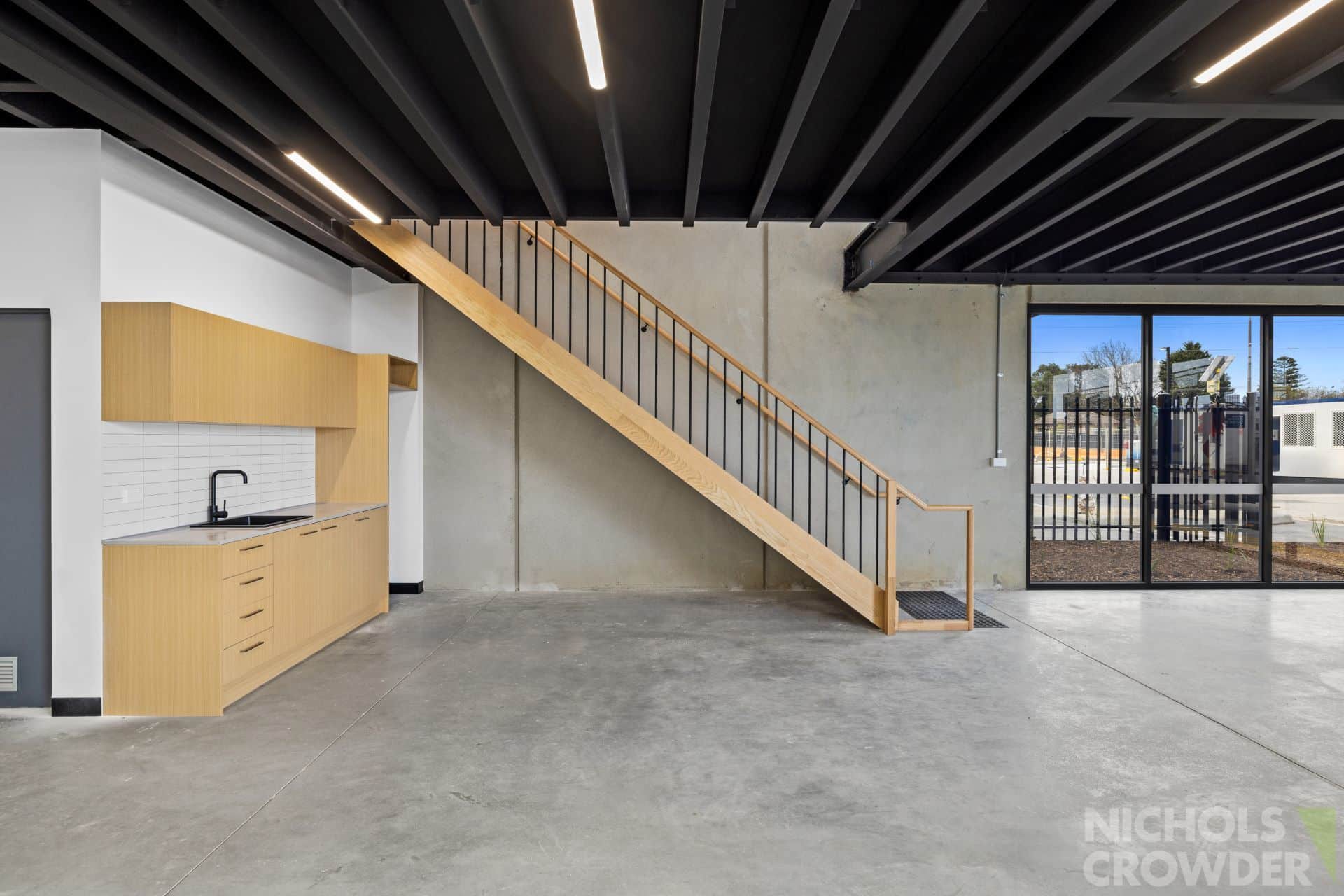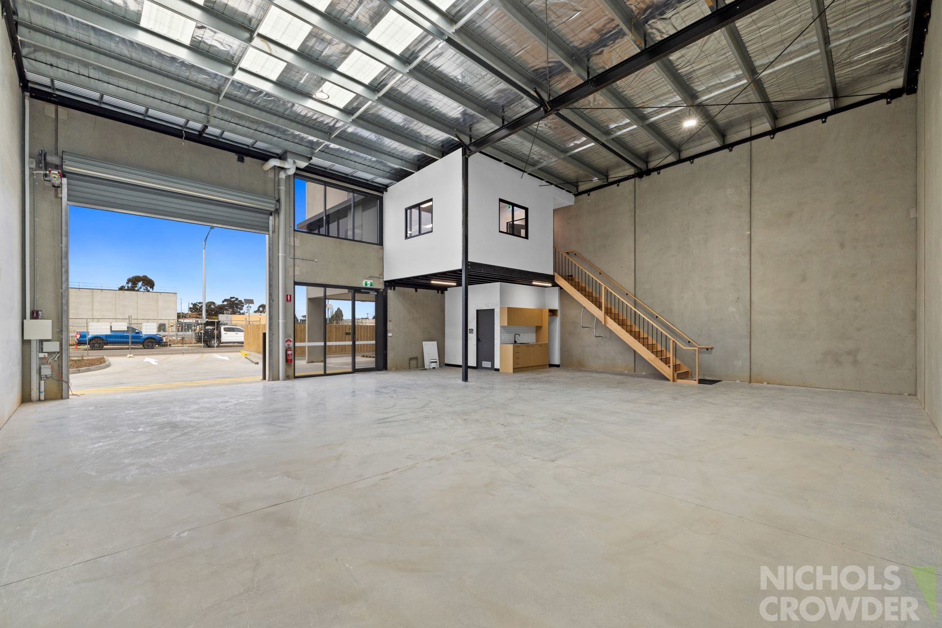 * Glass-fronted office overlooking the warehouse/display area